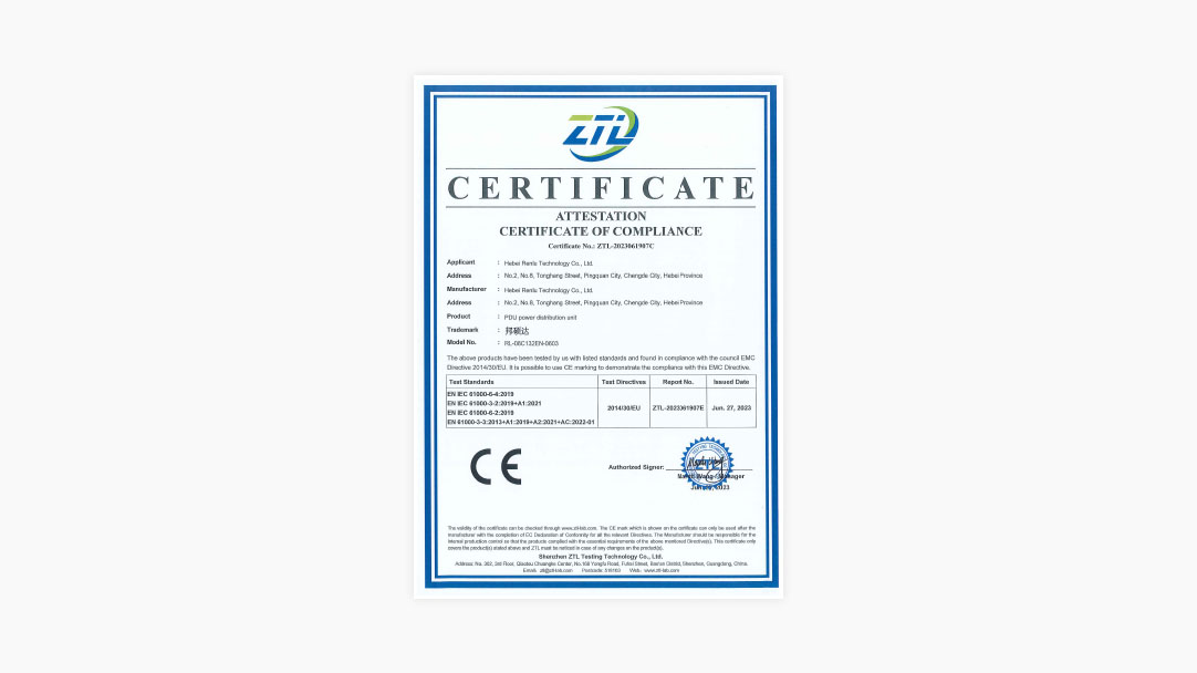 - ZTL-2023061907C_河北仁禄_PDU电源分配单元_RL-08C132EN-0603_CE-EMC_EN 61000-6-4_Certificate